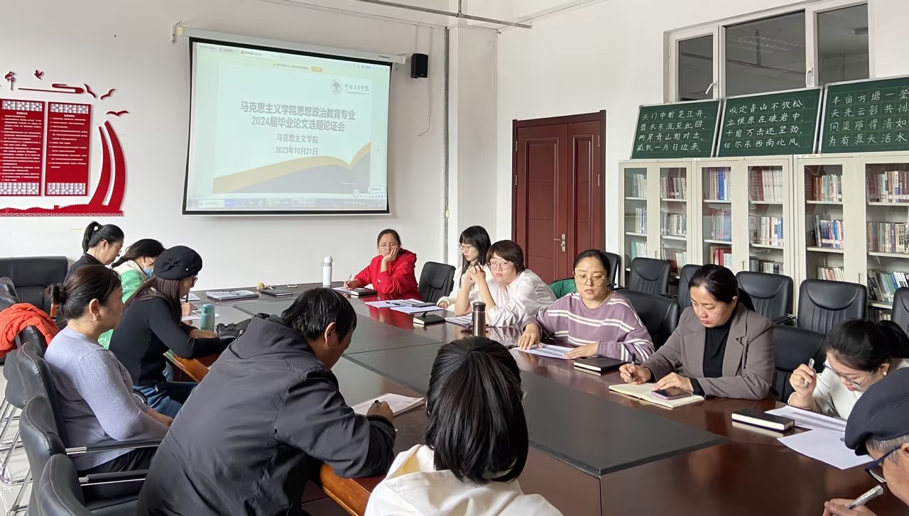 为进一步推进2024届本科毕业生毕业论文工作,提高毕业论文选题质量,确保学生毕业论文高质量完成,10月21日上午,AWC万象城娱乐在崇文楼B123会议室组织召开了2024届思想政治教育专业本科毕业论文选题论证会,思想政治教育专业全体论文指导教师参加了本次会议。