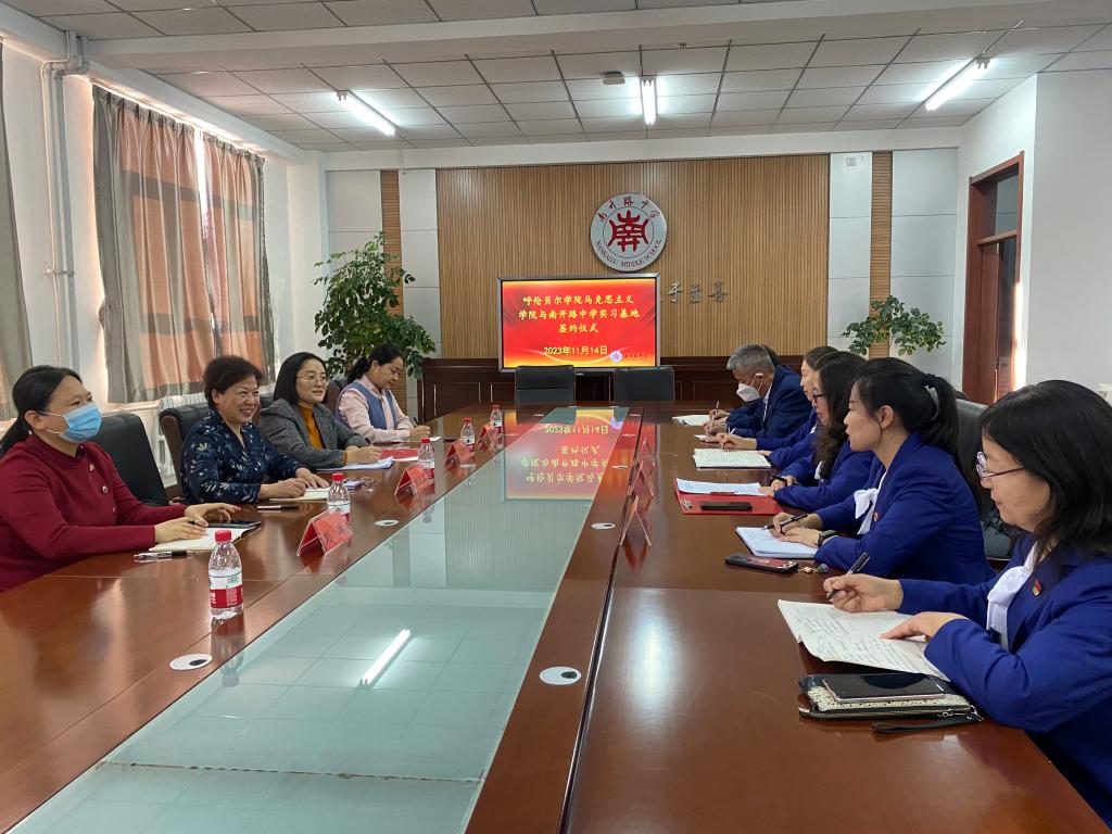 11月14日上午,AWC万象城娱乐与海拉尔南开路中学签订了共建教育教学实践基地协议书。学院党总支书记刘凤琴,院长吴秀芳,副书记刘琳、副院长明兰和南开路中学校级领导班子及思政课教师代表参加了此次仪式。