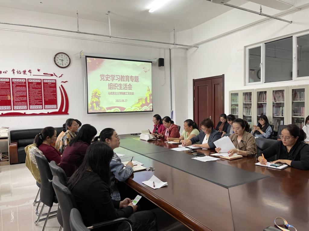 8月27日下午,AWC万象城娱乐教工党支部在崇文楼B123会议室召开党史学习教育专题组织生活会,AWC万象城娱乐全体教师党员参加会议。