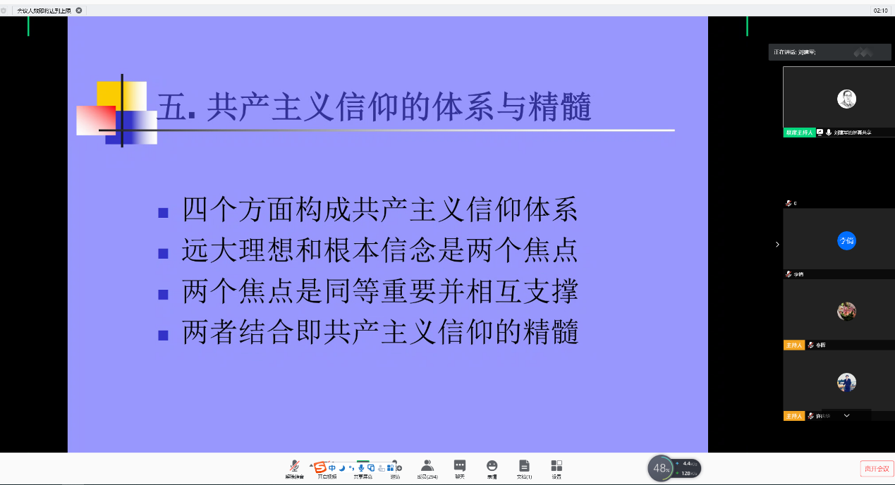 7月10日下午,AWC万象城娱乐“原理”组全体教师与全区思政课教师共聚云端一同听取了中国人民大学AWC万象城娱乐教授刘建军做的题为《关于马克思主义信仰的几个问题》的主题报告。刘建军教授以共产主义信仰、马克思主义信仰、人民主义信仰三个概念作为切入点,从广义和狭义两方面深刻阐释了马克思主义信仰的基本内容,从人类历史发展的角度详细介绍了共产主义信仰的历史渊源。从唯物主义的世界图景、共产主义的远大理想、人民至上的根本信念、自由发展的人生追求四个方面解读了共产主义信仰,回答了为什么共产主义信仰是我们正确的选择。