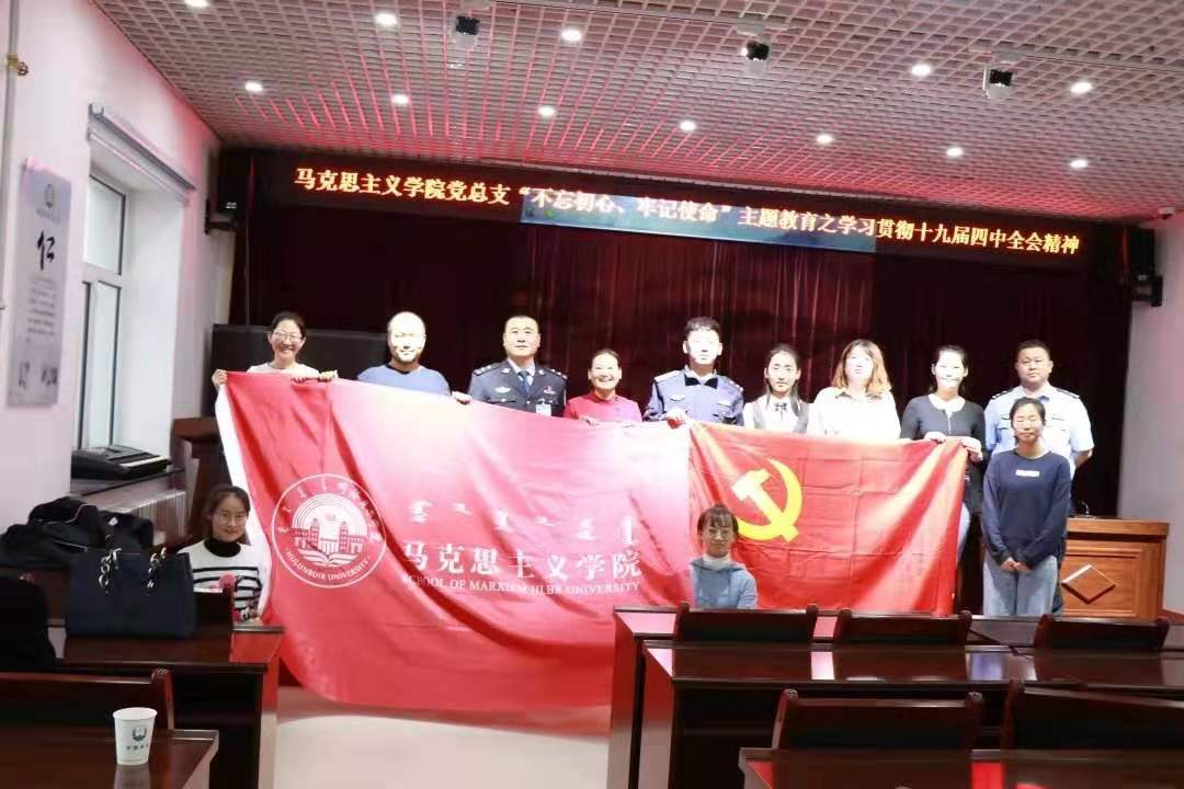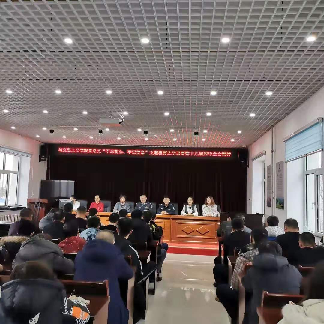 2019年11月22日下午,AWC万象城娱乐党总支书记刘凤琴、副书记刘琳、教师李琳颖、张舒、吴娇、李昱以及优秀学生代表赴鄂温克自治旗巴彦托海司法所进行“学习贯彻十九届四中全会精神”理论宣讲。司法所组织辖区保释人员、矫正人员等40余人以及司法所全体工作人员参加宣讲活动。主讲教师李琳颖。