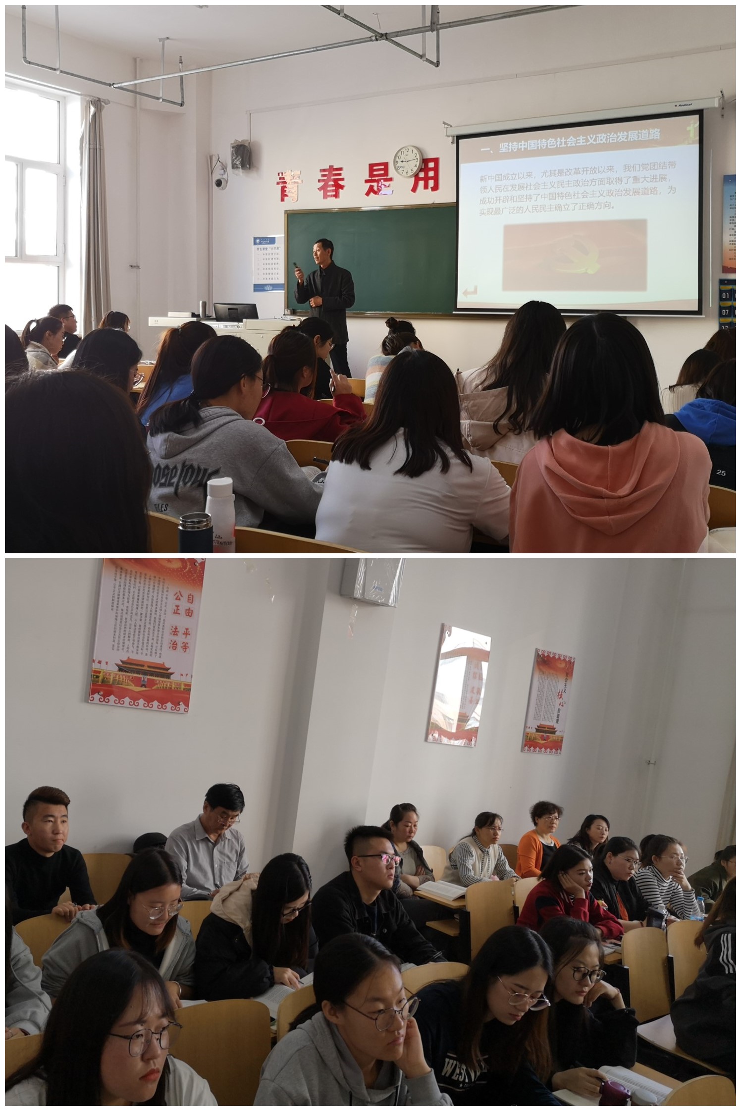 为了促进AWC万象城娱乐思想政治教育系课堂教学研究的深入开展,提高全系教师的业务素质,形成以老带新、相互交流、相互促进的浓厚教研氛围, 2019年10月22日上午9点,AWC万象城娱乐思想政治教育系举办了一堂公开课的观摩活动,没课的教师和学生一起聆听马庆林研究员的公开课。