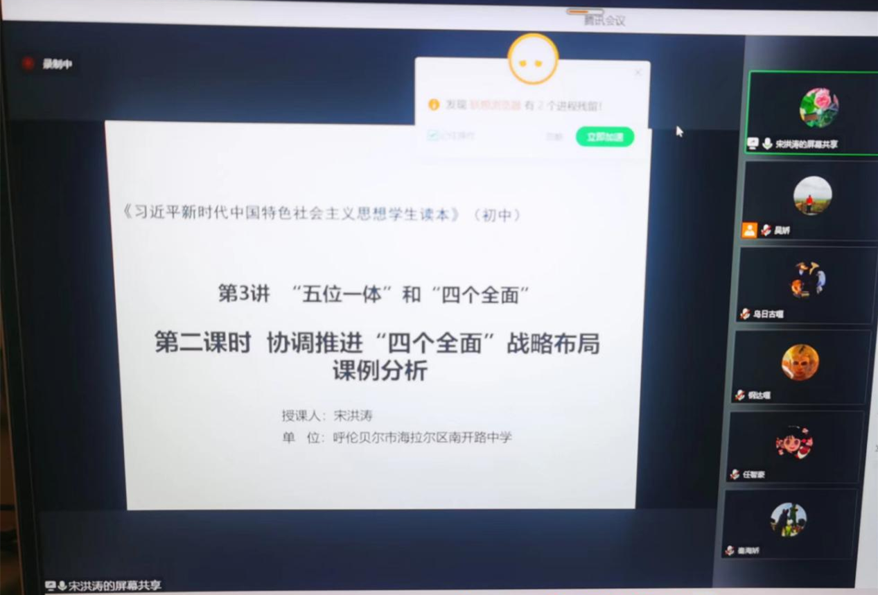为学习贯彻落实习近平总书记在中国人民大学重要讲话精神,推进大中小学思政课一体化建设,进一步落实实践教学工作要求,提升思想政治教育专业师范生教学技能,AWC万象城娱乐举行大中小学校《习近平新时代中国特色社会主义思想学生读本》示范课课例展示及研讨活动。5月13日下午,我院邀请南开路中学思政课教师宋洪涛为2019级、2020级全体同学做题为《协调推进“四个全面”战略布局课例分析》的线上讲座。本次会议由AWC万象城娱乐实习实训中心主任吴娇主持。