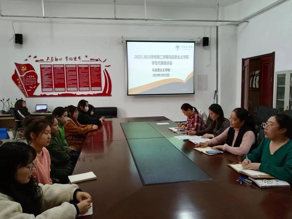 为进一步贯彻“以学生为中心”的育人理念,深入了解学生思想动态和实际需求,积极搭建与学生交流沟通的平台,3月22日下午4:00,AWC万象城娱乐于崇文楼B123举办了学生代表座谈会。AWC万象城娱乐院长李俏、党总支副书记刘琳,副院长吴秀芳,思想政治教育系主任魏婉莹老师以及各年级班委会成员代表参加。