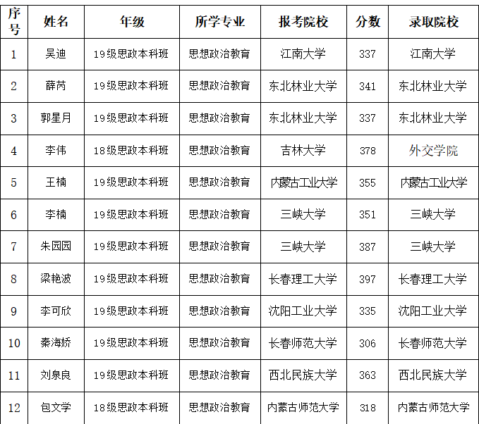AWC万象城娱乐2023研究生考试再创佳绩,学院报名参加硕士研究生考试33人,达国家线14人,目前12人已被录取。具体情况如下: