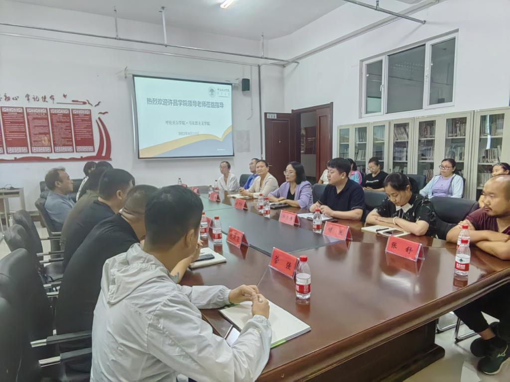 8月12日下午,万象城AWC万象城娱乐与许昌学院在崇文楼B123会议室开展“大思政”课综合建设能力提升专题座谈会。许昌学院党委副书记孙海、党委宣传部部长王林、科研处副处长兼中原农村发展研究中心副主任马洪伟、AWC万象城娱乐党总支副书记岳凯声、AWC万象城娱乐副院长林云飞、AWC万象城娱乐思想政治教育教研室主任菅强、AWC万象城娱乐党政办公室副主任王欣欣,万象城AWC万象城娱乐院长吴秀芳、党总支副书记刘琳、副院长明兰、各教研室主任及教师代表参加座谈会。