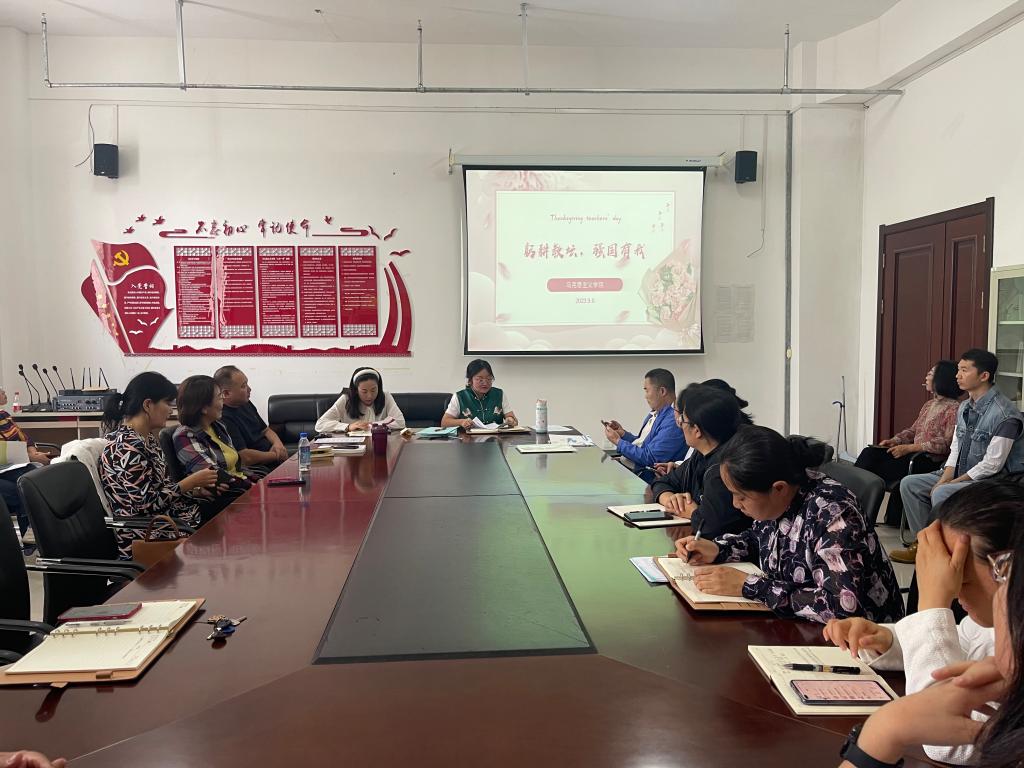 活动中,吴秀芳院长向全体老师致以节日最美好的祝愿,对老师为学院各项事业发展做出的重要贡献表示衷心的感谢。接着,全体老师通过视频集体学习了习近平总书记在中共中央政治局第五次集体学习和在北京育英学校考察时的重要讲话精神,进一步认真贯彻了党的二十大精神和习近平新时代中国特色社会主义思想。同时,暑期外出培训学习的老师就暑期学习心得进行了交流分享。