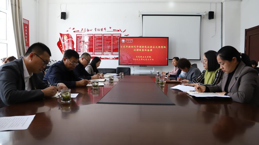 为高质量建设好、讲授好思政课,推动习近平新时代中国特色社会主义思想进教材、进课堂、进头脑,更好的落实立德树人根本任务,2023年9月20日,校党委书记王广利,校党委副书记张宏天,校党委委员、宣传部部长李俏和教务处副处长王继钢深入AWC万象城娱乐参加《习近平新时代中国特色社会主义思想概论》课程集体备课,会议由AWC万象城娱乐院长吴秀芳主持,学院全体教师参加备课会。