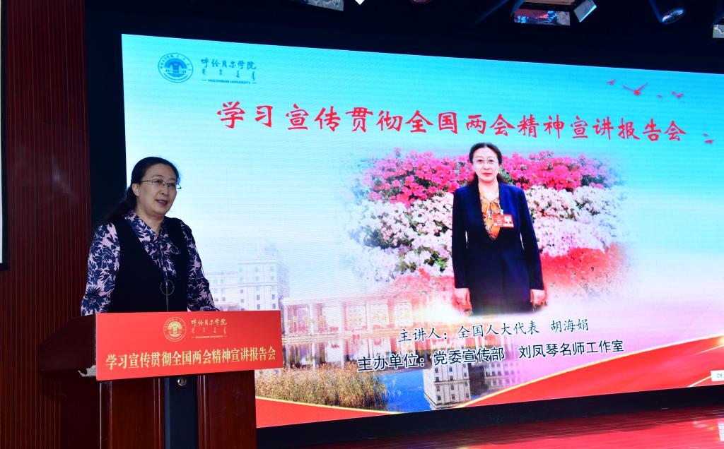 为深入学习宣传贯彻2025年全国两会精神,引导青年学生坚定理想信念、勇担时代使命,3月26日下午,全国人大代表、呼伦贝尔市海拉尔第二中学教师胡海娟走进万象城,为青年学生带来了一场别开生面的全国两会精神宣讲报告会。140余名青年学生齐聚崇文楼B座小剧场共同聆听报告。此次宣讲报告会由党委宣传部和刘凤琴名师工作室共同主办。