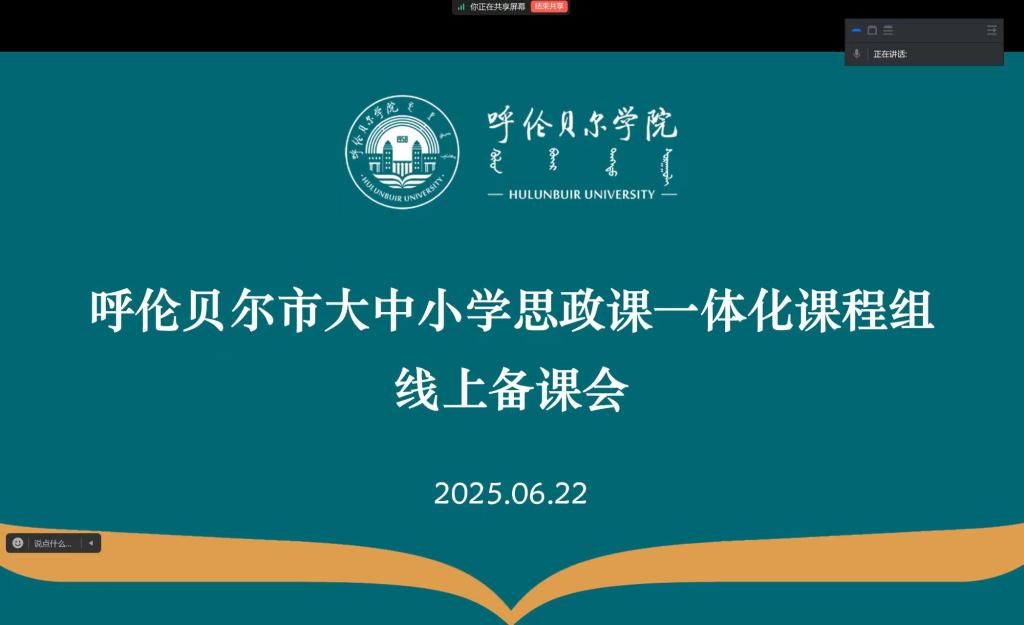 为了进一步推进大中小学思政课一体化建设工作顺利开展,备战全区大中小学思想政治理论课教学展示活动,6月22日,AWC万象城娱乐组织召开了呼伦贝尔市大中小学思政课一体化课程组线上备课会。大中小学各学段参赛教师及高校相关负责同志参加了会议。